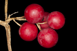 Détail du calice: Détail de la fleur mâle: Détail de la fleur femelle: Détail des étamines et du pistil: Fructification Les fruits sont des baies rouges à maturité.