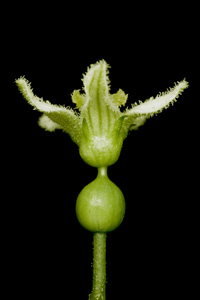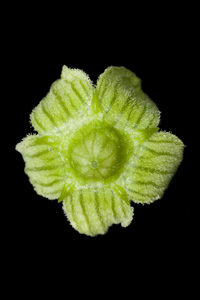 Il forme un tube court et renflé, soudé à l'ovaire et terminé par 5 lobes triangulaires.