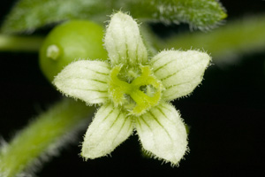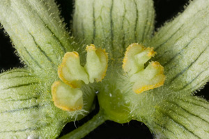 Les fleurs mâles présentent 5 étamines soudées à la corolle et soudées entre elles en deux groupes de 2, la cinquième restant libre.