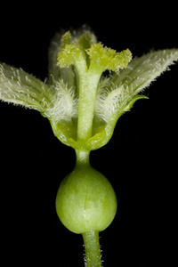 Dans les fleurs femelles, le pistil est surmonté de 3 stigmates.